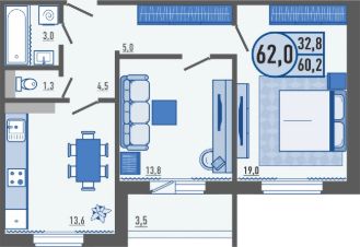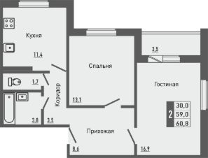 Продаётся 2-комнатная квартира в строящемся доме (корпус 3 (поз.32)), срок сдачи: III-кв. 2026, общей площадью 60.8 кв.м., на 12 этаже. Новый жилой комплекс ''Зеленый квартал'' от застройщика ''Орелстрой'' расположен по адресу Орловский муниципальный округ, деревня Жилина, улица Генерала Лаврова.