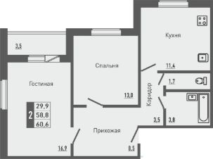 Продаётся 2-комнатная квартира в строящемся доме (корпус 3 (поз.32)), срок сдачи: III-кв. 2026, общей площадью 60.6 кв.м., на 2 этаже. Новый жилой комплекс ''Зеленый квартал'' от застройщика ''Орелстрой'' расположен по адресу Орловский муниципальный округ, деревня Жилина, улица Генерала Лаврова.