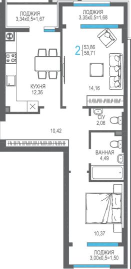 Продаётся 2-комнатная квартира в строящемся доме (Корпус 6), срок сдачи: I-кв. 2026, общей площадью 58.71 кв.м., на 2 этаже. Жилой комплекс ''На Фонтанке'' в городе Алушта на улице Багликова.
