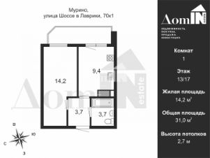 Арт. 66496564 В продаже однокомнатная квартира в шаговой доступности от метро Девяткино.Квартира площадью 31 кв.м. (площадь указана без балкона) расположена в новом, современном жилом комплексе комфорт класса. Комната 14,2 кв.м, кухня 9,4 кв.м. с выходом на балкон. Окна выходят на восток, во двор. В квартире качественная отделка.Инфраструктура района развита, продуктовые магазины, детские сады и школы в пешей доступности. До метро Девяткино 15 минут пешком. В договоре указываем полную стоимость. В квартире никто не прописан. Звоните, отвечу на все интересующие вопросы,оперативно организую просмотр.