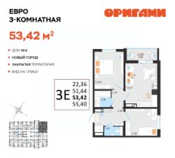 ЖК ОригамиСтарт продаж дома 4Комфортная квартира с грамотной планировкой: разумное расположение комнат и просторная кухня гостиная. Сдается в базовой отделке: готова стяжка пола и установлены счетчики, лоджии остеклены и заведен кабель для подключения интернета. Качественные металлические входные двери с надежной фурнитурой.Дополнительно вы можете выбрать любой вид отделки от застройщика — ''whitе bох'' или ''whitе bох PRO'' с полностью готовым санузлом, а также ''под ключ'' в стиле Утро или Вечер.Современные и стильные подъезды с яркими дизайнерскими холлами и качественной отделкой. В каждом подъезде оборудованы просторные колясочные, велосипедные и лапомойки для домашних питомцев.Отдельно вы можете приобрести кладовое помещение на своем этаже для хранения сезонных вещей. Закрытый двор с видеонаблюдением, парковки за пределами двора, грамотное и продуманное зонирование: березовая роща, луг для активностей и пикников площадка для стритбола, столы для тенниса приватные беседки, сухой пляж с шезлонгами, пешеходные дорожки детские площадки с мягким и безопасным покрытием спортивные площадки, воркаут зоны для спорта Пространство с готовой инфраструктурой продуктовый магазин у дома 12 образовательных и творческих школ медицинский кластер 7 торговых центров 5 детских садов парк ''Прибрежный''Квартира находится на 6 этаже в 1 подъезде