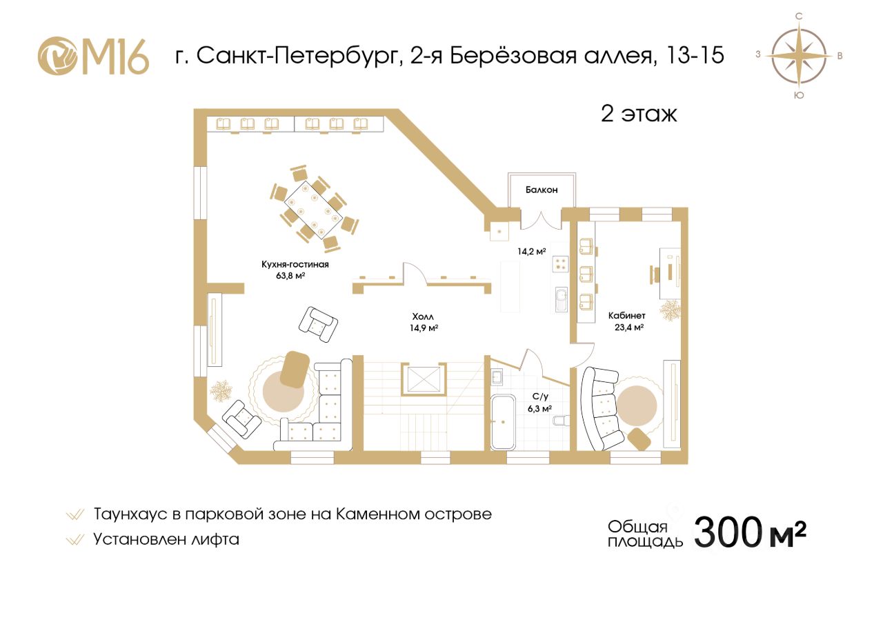 К продаже предлагается квартира общей площадью 107,7 кв. м. Планировка предусматривает возможность организации просторной кухни-гостиной, двух или трёх спален, гардеробных и нескольких санузлов. Высокие потолки 3,1 м и панорамные окна обеспечивают хорошее естественное освещение и виды на реку Ждановку. Техническое оснащение соответствует высокому стандарту: вентилируемый фасад, энергосберегающие окна, автономные газовые котельные, центральная система кондиционирования, многоступенчатая очистка воды, современные скоростные лифты KONE. Для жителей предусмотрены: студии пилатеса и йоги, частные детские сады, рестораны, кофейня, цветочная студия, салон красоты, прогулочные зоны и променад вдоль берега Малой Невки. Инфраструктура отвечает уровню de luxe: консьерж-сервис и круглосуточный диспетчер, многоуровневая охрана, закрытый двор с лаунж-зонами, международный детский сад, школы и развивающие студии. Дизайнерские лобби с бильярдной, переговорной и игровой комнатами, трёхуровневый паркинг на 700+ мест, а также рестораны и кафе с возможностью доставки блюд прямо в квартиры.На территории оборудованы детские площадки, зоны отдыха, а безопасность обеспечиваются круглосуточной охраной и системой видеонаблюдения. Жилой комплекс ''Леонтьевский Мыс'' — один из самых престижных проектов Петербурга, расположенный всего в пяти минутах от Крестовского острова и восьми минутах от Невского проспекта. Комплекс возведён на живописном мысу, омываемом реками Ждановкой и Малой Невкой, что обеспечивает редкое сочетание панорамных видов, свежего воздуха и приватности в самом центре города.