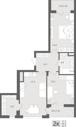 Продаётся 2-комнатная квартира в строящемся доме (Дом 1), срок сдачи: III-кв. 2027, общей площадью 63.6 кв.м., на 3 этаже. Новый жилой комплекс ''Берег морской'' от застройщика ''Калининградстройинвест'' расположен по адресу: Калининградская обл., г. Светлогорск, ул. Олимпийский бульвар.