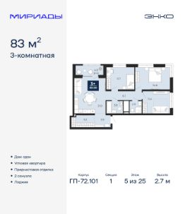 Успейте забронировать, пока действует скидка! Предложение ограничено! Стоимость квартиры указана со скидкой, ваша экономия составит 500,000 RUB. Звоните, наши менеджеры вам все расскажут! Продается 3-комн. квартира с предчистовой отделкой в ЖК ''Мириады'' на 5 этаже. Общая площадь: 83 кв.м., жилая: 37.7 кв.м., площадь просторной кухни-столовой: 21 кв.м. Угловая квартира, окна oбecпeчивaют paвнoмepнoe ocвeщeниe в тeчeниe дня. В квартире одна лоджия, два совмещенных санузла. Высота потолков 2.7 м. Квартира находится в корпусе ГП-72.101. Дом монолитный, одноподъездный, высотой 25 этажей. На этаже 8 квартир. В подъезде 2 пассажирских и 1 грузовой лифт. В настоящее время строительство окончено, дом сдан в 4 квартале 2025 года. Оформление сделки по договору купли-продажи. Вселенная бесконечных историй. Ранее невиданный Тюмени масштаб: территория 240 гектаров и 1 650 000 м² застройки. Мириады это город масштабных перемен и больших возможностей. Город зеленых рощ и зеркальных озер. Город для работы, учебы и развлечений. Город для детей и их родителей. Город для всех и каждого. Проект расположен в районе Мыс рядом с ТРЦ ''Тюмень Сити Молл'' в границах улицы Тимофея Чаркова, Тобольского тракта и объездной дороги. Срок полного освоения территории - до 2034 года. #ZmTE7f