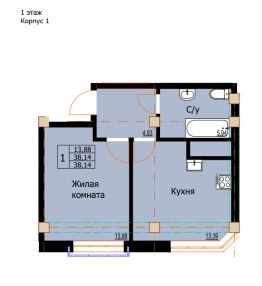 Продаётся 1-комнатная квартира в строящемся доме (Корпус 1), срок сдачи: II-кв. 2027, общей площадью 38.14 кв.м., на 6 этаже. Новый жилой комплекс ''по ул. Гаевского'' от застройщика ''СЗ Золотая Корона'' расположен по адресу: г. Ессентуки, улица Гаевского.