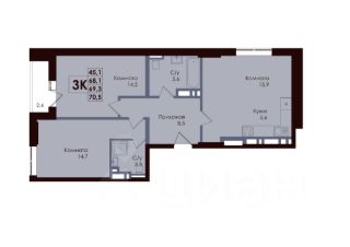 Трехкомнатная квартира предлагает продуманное и комфортное пространство: три удобные изолированные комнаты обеспечивают каждому члену семьи личное уютное пространство. Отдельно выделена гардеробная, где с комфортом разместится одежда и аксессуары, освобождая жилые зоны от лишнего хранения. Кухня-ниша органично вписана в общее пространство, не нарушая его целостности, а раздельный санузел добавляет удобства и гигиеничности. Просторные прихожая и коридор обеспечивают легкую циркуляцию и дополнительные возможности для организации порядка. Завершает планировку лоджия — практичное и светлое продолжение интерьера для отдыха, хранения или любимых растений.