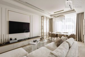 Представляем вашему вниманию эксклюзивную квартиру площадью 78 кв. м в ЖК HEADLINER в престижном Пресненском районе в центре МосквыКвартира готова к заселению. Планировочное решение воплощает в себе комфорт и высокое качество жизни, а элегантный интерьер разработан по индивидуальному дизайн-проекту от студии LA.BURO с учетом всех современных требований. Планировка включает: - гостиную с зоной столовой, которая идеально подходит для семейных ужинов, званых обедов, встреч с друзьями и домашних киносеансов,- полностью оборудованную кухню с удобным кухонным островом, - просторную спальню с гардеробной комнатой, - ванную комнату,- прихожую с гардеробом. Благодаря большим окнам и 3-метровым потолкам, пространство наполнено приятным и равномерным естественным светом. Квартира находится на 35 этаже. Из окон открываются захватывающие панорамные виды на город: из кухни — вид на реку, из спальни — на небоскребы ''Москва-Сити''.В квартире выполнена абсолютно новая дизайнерская отделка в стиле современной классики. Все материалы отделки и мебели подобраны с особым вниманием к деталям и качеству, что делает этот интерьер по-настоящему эксклюзивным и дорогостоящим.На полу — инженерная доска премиальной селекции Finex. Мебель высокого качества на заказ от Casa Di Russo, обеденный стул, стулья, барные стулья — Amgrades, журнальные столы — Tok. Световые решения от бренда SWG, а декоративный свет изготовлен на заказ из хрусталя. Элегантный интерьер дополняют предметы декора и картины авторства Лиа Манзони — основателя бренда J&L DESIGN by LIA MANZONI.Установлена премиальная техника от ведущих мировых брендов. Холодильник немецкого бренда Liebherr, винный холодильник от шведского бренда Asko, духовой шкаф швейцарского бренда V-ZUG, стиральная машина с сушилкой от итальянского бренда AEG, телевизор — Samsung Smart TV.Предусмотрены качественные инженерные системы, вентиляция и кондиционирование, фильтр для очистки воды. Оборудована система ''Умный дом'', которая позволяет устанавливать индивидуальные параметры температурного режима, влажности и других удобств — управление осуществляется через панель, iPad или смартфон.Эта квартира — идеальное сочетание роскоши, комфорта и функциональности, готова стать вашим новым домом, где каждый день будет наполнен уютом и гармонией.Агентство состоит в ассоциации AREA [Лот #24128]