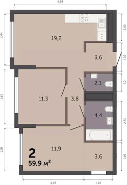 Продаётся 2-комнатная квартира в строящемся доме (Секция 1.1), срок сдачи: I-кв. 2028, общей площадью 59.9 кв.м., на 28 этаже. Новый жилой комплекс ''Парк Культуры'' от застройщика ''СЗ Новый Дом'' расположен по адресу: г. Екатеринбург, Базовый переулок.