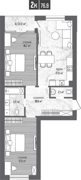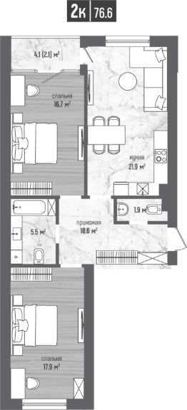 Квартира: 4 к 110,41 кв.м., 18 этаж в комплексе Z-town, 2 очередь, корп.2, сдача: 3кв. , этажей: 21, адрес Воронеж г., Чуева наб., д. 7, Застройщик: Новый код.