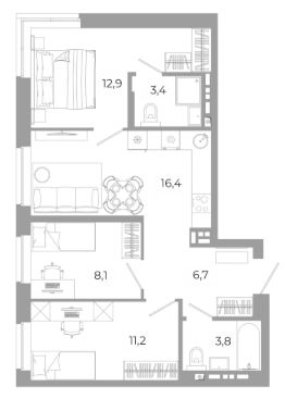 Торопитесь оформить бронирование, пока действует скидка! Предложение ограничено! Стоимость квартиры указана со скидкой, ваша экономия составит 330,828 RUB. Информация по телефону, наши менеджеры вам все расскажут! Однокомнатная квартира с предчистовой отделкой в ЖК ''Мириады'' на 3 этаже. Общая площадь: 38.7 кв.м., жилая: 11.6 кв.м., площадь просторной кухни-столовой: 18.4 кв.м. Все окна выходят на одну сторону. В квартире один совмещенный санузел. Высота потолков 2.7 м. Дом монолитный, многоподъездный, переменной этажности, от 14 до 16 этажей. Квартира находится в 5-й секции высотой 14 этажей в корпусе ГП-72.102. На этаже 8 квартир. В подъезде 1 пассажирский и 1 грузовой лифт. Строительство завершено, дом сдан в 4 квартале 2025 года. Оформление сделки по договору купли-продажи. Вселенная бесконечных историй. Ранее невиданный Тюмени масштаб: территория 240 гектаров и 1 650 000 м² застройки. Мириады это город масштабных перемен и больших возможностей. Город зеленых рощ и зеркальных озер. Город для работы, учебы и развлечений. Город для детей и их родителей. Город для всех и каждого. Проект расположен в районе Мыс рядом с ТРЦ ''Тюмень Сити Молл'' в границах улицы Тимофея Чаркова, Тобольского тракта и объездной дороги. Срок полного освоения территории - до 2034 года. #Z6B4W9