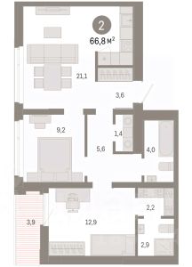 Просторная 2-комн. квартира с предчистовой отделкой в ЖК ''Республики 205'' на 9 этаже. Общая площадь: 66.87 кв.м. Высота потолков 2.7 м. Купить квартиру можно с помощью программ покупки от застройщика Брусника:- ипотека по эксклюзивной ставке с помощью в получении положительного кредитного решения через сервис ипотечный брокер,- квартиры в рассрочку без процентов от застройщика Брусника,- обмен квартиры на новую. Получить одобрение ипотеки или рассрочку, а также осуществить обмен квартир можно онлайн. Дом монолитный, многоподъездный, переменной этажности, от 7 до 25 этажей. Квартира находится в 3-й секции высотой 9 этажей в корпусе 3-1. На этаже 6 квартир. В подъезде 1 пассажирский и 1 грузовой лифт. Окончание строительства - 1 квартал 2027 года. Оформление сделки по договору долевого участия. Район Проект расположен в границах улиц Пермякова, Энергетиков, Воровского и Республики. До центра города — 10 минут на машине. Рядом — автомобильная развязка на пересечении улиц Пермякова и Республики. В шаговой доступности есть школы, детские сады, поликлиники, крупный торговый центр, автовокзал и несколько скверов. Проект ''Республики 205'' — это проект комплексного развития территории, уникальный по своему наполнению. Переосмысляя бывшую территорию завода медицинского оборудования, мы создадим новое место силы — микрорайон, насыщенный деловой, развлекательной, рекреационной, игровой, образовательной и медицинской инфраструктурой. До каждого полезного сервиса здесь можно будет дойти за 15 минут. Локальными центрами ''Республики 205'' будут общественные пространства — скверы, парки, бульвары и площади.В границах нашего участка мы намерены разместить школу, рассчитанную на 1550 учеников, два детских сада на 300 мест и встроенный детский сад на 100 мест.В одном из цехов бывшего завода расположится креативный кластер ''Кузница''. Он станет площадкой для нескольких институций — галереи, лектория, книжного магазина-библиотеки, кинобара и точек креативного pop-up-ритейла. Пешеходные бульвары внутри района соединят между собой улицу ресторанов, детские и спортивные площадки, событийную площадь и летний кинотеатр. Идентификатор квартиры по базе застройщика: РСП03. #z6aWVm