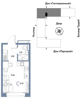 Объявление от застройщика Страна Девелопмент. Покупка квартиры защищена банком.Продается 1комнатная квартира на 10 этаже от застройщика Страна Девелопмент. Площадь квартиры 21,47 кв. м.О ПРOЕКТЕMикpорайон ''Домaшний'' — этo 6 очередей стpоитeльcтвa, 24 дома пеpемeннoй этажнoсти. Каждый дом уникальный.Внутри микрорайона появится огромный пешеходный бульвар — бульвар Традиций. Центром притяжения станут открытые пространства для отдыха жителей и гостей микрорайона, которые легко меняются под сезонные сценарии отдыха: новогодняя елка, ярмарки, кинопоказы и т.д.У каждого дома обустроен приватный двор с зонами для активного и спокойного отдыха. В активной зоне детские разновозрастные площадки с горками, песочницами и качелями, воркаут-зоны. В спокойной — скамейки, мини-амфитеатры, закрытые перголы. Уютной атмосферу сделает обильное озеленение и освещение ''домашними'' торшерами.ОТДЕЛКАКвартиры сдаются с предчистовой отделкой. Все грязные работы выполнены: произведена разводка электричества и отопления, выполнена стяжка пола, стены выровнены ''под маяк''. В квартире установлены розетки, выключатели и радиаторы. На входе — надежная стальная дверь. Вам остается только выбрать материалы и начать ремонтДоступна опция ''Ремонт от застройщика''. Стоимость можно включить в ипотеку. КУХНЯ С ТЕХНИКОЙТеперь дополнительно к ремонту можно заказать кухню со встроенной техникой. Эргономику и функциональное наполнение разработали под каждую планировку.ПОЛНАЯ МЕБЛИРОВКАБольше не нужно тратить время даже на подбор, доставку и сборку мебели.Вы можете включить в стоимость квартиры с ремонтом полную меблировку.- Что входит в меблировку?- Кухня с техникой и сантехникой- Диван- Кровать- Шкаф в спальне- Шкаф в прихожейНа консультации менеджер подскажет, какие акции действуют, и как получить одобрение по ипотеке с низкой ставкой. Более подробная информация по телефону.Застройщик ООО СЗ ''Страна Запад''. Проектные декларации на сайте наш.дом.рф.
