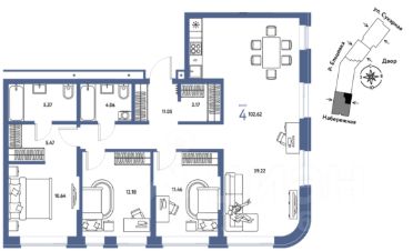 Новая квартира в ЖК ''Страна.Береговая'' напрямую от федерального застройщика ''Страна Девелопмент''. Продается 4комнатная квартира на 2 этаже от застройщика Страна Девелопмент. Площадь квартиры 102,62 кв. м. Жилой комплекс ''Страна.Береговая'' — новый флагманский проект федерального застройщика ''Страна Девелопмент'' в Новосибирске. Дом на берегу Оби с захватывающими видами из окон. Три секции разной этажности с акцентной башней-доминантой образуют камерное пространство с закрытым двором и личным зелёным садом для отдыха. ПРЕИМУЩЕСТВА Свой приватный двор, окружённый зеленью, которая будет цвести весь год. Двор с релакс-пространством, спортивной зоной с воркаут и настольным теннисом. Детская площадка из природных материалов. Двор круглосуточно находится под видеонаблюдением. Парадные с зелёным оазисом из растений. Для комфорта мы предусмотрели тёплые тамбуры, в зонах ожидания разместили мягкие диваны. Также мы добавили возможность бесключевого доступа — по распознаванию лица или считыванию BLE-ключа. Спроектирована подземная парковка на 217 машиномест. Ваш личный транспорт всегда будет под защитой и видеонаблюдением — переживать о его сохранности не придётся. Въезд в паркинг осуществляется с помощью умной камеры по госномеру либо BLE-метке. А чтобы подняться к квартире, не нужно выходить на улицу — лифты отвезут на нужный этаж. Для гостей за территорией двора предусмотрена открытая гостевая парковка. ОТДЕЛКА Квартиры сдаются с предчистовой отделкой: произведена разводка электричества и отопления, выполнена стяжка пола, стены выровнены ''под маяк'', установлены розетки, выключатели и радиаторы. ДИЗАЙНЕРСКАЯ ОТДЕЛКА При покупке квартиры в ЖК ''Страна.Береговая'' можно включить стоимость ремонта в ипотеку. Пять вариантов на выбор: хлопковая нить, серый шторм, белый камень, шалфей, голубой вереск. Включено всё — обои, ламинат, натяжной потолок и даже кондиционер. Также для вас есть четыре варианта ремонта в ванной — акриловая ванна с экраном, смеситель с лейкой, подвесной унитаз, зеркало с подсветкой. Останется только разместить мебель! СПОСОБЫ ПОКУПКИ Сотрудники ''Страна Девелопмент'' будут сопровождать вас на каждом этапе сделки, помогут получить одобрение по ипотеке или снизить ежемесячный платеж. - ипотека - рассрочка - с использованием материнского капитала - 100% оплата наличными
