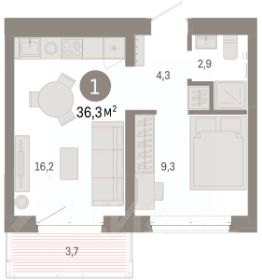 1-комн. квартира с предчистовой отделкой в Кварталы ''На Минской'' на 5 этаже. Общая площадь: 36.3 кв.м., жилая: 9.3 кв.м., площадь просторной кухни-гостиной: 16.2 кв.м. Все окна выходят на одну сторону. В квартире один балкон, один совмещенный санузел. Высота потолков 2.7 м. Дом монолитный, многоподъездный, переменной этажности, от 7 до 11 этажей. Квартира находится в 10-й секции высотой 7 этажей в корпусе 2. На этаже 5 квартир. В подъезде 1 пассажирский и 1 грузовой лифт. Окончание строительства - 1 квартал 2027 года. Оформление сделки по договору долевого участия. Квартира с кухней-гостиной и одной спальней в кварталах ''На Минской''. Особенности планировки: балкон, предчистовая отделка. квартиры в нашей базе: МНС02-Ж10.5.1. В сердце города Кварталы ''На Минской'' находятся в самом центре. За десять минут можно дойти до площади 400-летия Тюмени и Большого Драматического театра, Тюменского индустриального и медицинского университетов, спортивного комплекса ''Строймаш'', ТРЦ ''Гудвин'' и ''Премьер'', Тюменского технопарка. Поблизости много детских садов, школ и поликлиник. Пространство разного опыта Создавая кварталы ''На Минской'' мы вдохновлялись Хакскими дворами в Берлине и улицей Давида Агмашенебели в Тбилиси. И первые и вторая — яркие разнообразные пространства, сформированные прогрессивными архитекторами и притягивающие городских интеллектуалов. Престижная недвижимость здесь соседствует с барами, ресторанами, креативными кластерами и бюро, дизайнерскими лавками. Полезные улицы Кварталы ''На Минской'' свяжет сеть променадов, автомобильных проездов и велодорожек. Уличный фронт проекта мы сформируем с помощью аллейной посадки деревьев. Они создадут тень для ресторанов и кафе на первых этажах, визуально отделят проезжую и пешеходную части, снизят объём пыли и уровень шума. Мы реализуем проект в районе с развитой базовой инфраструктурой. И поэтому тщательно подошли к программированию коммерции, посчитав, что её основная задача — ''закрывать'' более высокие потребности жителей. Здесь может появиться пекарня с вкусными круассанами, турагентство на случай, если захочется перезимовать в Сочи, массажный кабинет, ресторан, когда надоело есть дома и многое другое. #zSZaUB