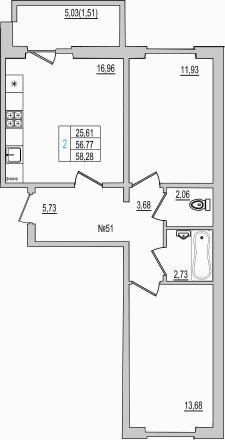 Продаётся 2-комнатная квартира в строящемся доме (Дом 94Д), срок сдачи: III-кв. 2027, общей площадью 58.28 кв.м., на 1 этаже. Новый жилой комплекс ''Семь сезонов'' от застройщика ''ЛУГ''