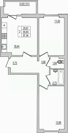 Продаётся 2-комнатная квартира в строящемся доме (Дом 94Д), срок сдачи: III-кв. 2027, общей площадью 57.34 кв.м., на 8 этаже. Новый жилой комплекс ''Семь сезонов'' от застройщика ''ЛУГ''