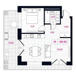 Продаётся 1-комнатная квартира в строящемся доме (Дом 77), срок сдачи: III-кв. 2026, общей площадью 69.62 кв.м., на 2 этаже. Новый жилой комплекс ''Пушкина 77'' от компании ''newton'' расположен в Центральном округе Омска по адресу: ул. Пушкина, 77.