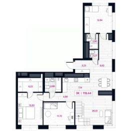 Продаётся 3-комнатная квартира в строящемся доме (Дом 77), срок сдачи: III-кв. 2026, общей площадью 121.32 кв.м., на 15 этаже. Новый жилой комплекс ''Пушкина 77'' от компании ''newton'' расположен в Центральном округе Омска по адресу: ул. Пушкина, 77.