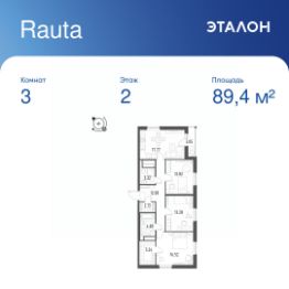 Продается 3-к квартира отделка White Box в ЖК ''Rauta''.Общая площадь квартиры — 89.4 кв. м, этаж 2 из 25.Тип дома — монолитный.Цена указана при 100% оплате.
