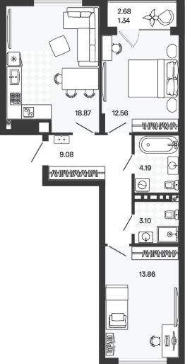 Однокомнатная квартира — это гармоничное сочетание современной планировки, естественного света и продуманной функциональности. Пространство легко зонируется на спальную и гостиную зоны, а просторная кухня с возможностью размещения полноценной обеденной группы становится центром домашнего уюта и встреч с близкими. Лоджия, выходящая из жилой зоны, расширяет полезную площадь: здесь можно организовать рабочий уголок, мини-оранжерею или уютное место для отдыха с чашкой кофе утром.