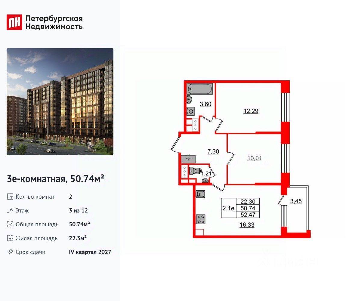 50 м² · Этаж 3 из 12