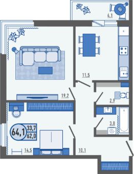Продаётся 2-комнатная квартира в сданном доме (дом 3), срок сдачи: I-кв. 2025, общей площадью 64.1 кв.м., на 17 этаже. Новый жилой комплекс ''Новые высоты'' от застройщика ''Орелстрой'' расположен по адресу Орловский муниципальный округ, деревня Жилина, улица Генерала Лаврова.