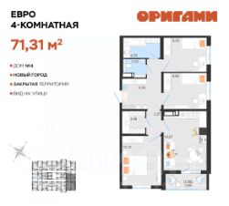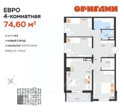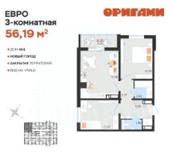 ЖК ОригамиСтарт продаж дома 4Комфортная квартира с грамотной планировкой: разумное расположение комнат и просторная кухня гостиная. Сдается в базовой отделке: готова стяжка пола и установлены счетчики, лоджии остеклены и заведен кабель для подключения интернета. Качественные металлические входные двери с надежной фурнитурой.Дополнительно вы можете выбрать любой вид отделки от застройщика — ''whitе bох'' или ''whitе bох PRO'' с полностью готовым санузлом, а также ''под ключ'' в стиле Утро или Вечер.Современные и стильные подъезды с яркими дизайнерскими холлами и качественной отделкой. В каждом подъезде оборудованы просторные колясочные, велосипедные и лапомойки для домашних питомцев.Отдельно вы можете приобрести кладовое помещение на своем этаже для хранения сезонных вещей. Закрытый двор с видеонаблюдением, парковки за пределами двора, грамотное и продуманное зонирование: березовая роща, луг для активностей и пикников площадка для стритбола, столы для тенниса приватные беседки, сухой пляж с шезлонгами, пешеходные дорожки детские площадки с мягким и безопасным покрытием спортивные площадки, воркаут зоны для спорта Пространство с готовой инфраструктурой продуктовый магазин у дома 12 образовательных и творческих школ медицинский кластер 7 торговых центров 5 детских садов парк ''Прибрежный''Квартира находится на 9 этаже в 1 подъезде