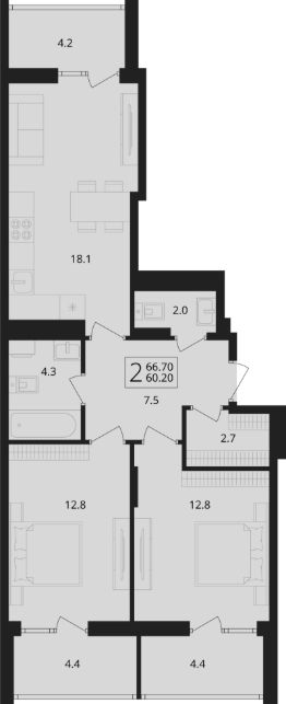 3-к, Весенняя, 2 корп. 6 Показать на карте