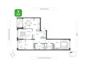 Классика в современной интерпретации Кухня-гостиная с выходом на лоджию — место для общения, отдыха и вечеров в кругу семьи Родительская спальня дарит ощущение уединения и комфорта. Место под шкаф оптимально решает вопросы хранения, а само пространство остаётся свободным и просторным, идеально подходящим для отдыха. Детская с продуманной системой хранения, спальным и рабочим местом создать функциональное пространство для игр, учёбы и сна. Здесь не будет лишних вещей, а каждый предмет найдёт своё место Два санузла позволяют легко справляться с утренними и вечерними заботами. Первый с ванной — удобный и практичный. Второй гостевой — ещё один важный элемент для вашего комфорта Просторная прихожая дарит ощущение лёгкости и организованности. Продуманные зоны для хранения вещей позволяют поддерживать порядок без усилий Отдельное помещение под прачечную. Стирка и сушка белья будут проходить незаметно, обеспечивая эстетичный вид ванной и комнат