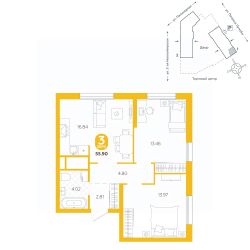 Квартира находится в ЖК ''Бодровский'' от федерального застройщика ''Паритет Девелопмент''. Это жилой комплекс комфорт-класса с современной архитектурой, расположенный в Екатеринбурге в районе улиц Патриса Лумумбы и 2-й Новосибирской.Добраться от него до центра города можно всего за 25 минут, дорога до ЕКАДа займет 12 минут. В окружении жилого комплекса есть шесть детских садов, пять школ, три больших парка, пять спорткомплексов, в том числе курортный комплекс Уктус.Квартал состоит из двух секций переменной этажности (от 14 до 24 этажей) и подземного паркинга с кладовыми, к которым можно будет спуститься на лифте. На первых этажах предусмотрены коммерческие помещения: жители смогут сделать маникюр, воспользоваться услугами ателье, выпить кофе с круассаном, не покидая своего района. Ввод в эксплуатацию в III кв. 2027 года.Территория комплекса огорожена от машин и посторонних людей. Озеленение с многолетними растениями и деревьями создает ощущение близости к природе. Двор наполнен всем необходимым: песочницы и качели для самых маленьких, интерактивная башня для детей постарше, воркаут-зона и места для отдыха. На всей территории реализована безбарьерная среда.В парадных выполнен авторский ремонт. За счет панорамного остекления и 4-метровых потолков там всегда много естественного света. Предусмотрены колясочные с местами для хранения спортинвентаря и креплениями для велосипедов.В проекте представлены студии, классические одно- и двухкомнатные варианты, а также двух-, трех- и четырехкомнатные квартиры в евроформате площадью от 25,32 до 76,65.Все планировки — функциональные и подходящие новоселам как с детьми, так и без них. Есть варианты с лоджиями, где можно организовать дополнительное пространство для отдыха, спорта или работы, а еще квартиры с мастер-спальней, гардеробной, двумя санузлами. В каждой предусмотрена вытяжная вентиляция с естественным побуждением, счетчики с телеметрией и корзины для кондиционеров.Характеристики квартиры:этаж - 13количество комнат - 3номер помещения - 119площадь квартиры - 55,9 кв.мЧтобы сэкономить время и деньги, можно приобрести квартиру сразу с ремонтом от застройщика. На выбор 3 конфигурации: базовый, с кухонным гарнитуром, с кухонным гарнитуром и другой мебелью - в светлом и темном оттенках. Ремонт можно включить в ипотеку.