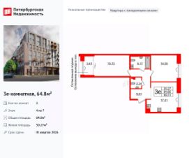 Продается просторная 2-комнатная квартира от застройщика в жилом комплексе ''Imperial Club'' в уютном Василеостровском районе.До метро можно добраться на транспорте всего за 7 минут.Окна от пола до потолка позволят безгранично любоваться видами Петербурга, наполнят комнату солнцем и светом!Уникальная, функциональная европланировка, большая кухня-гостиная 17.41 м², просторная прихожая 9.61 м². Общая площадь квартиры - 64.8 м², жилая 30.27 м², высота потолка 3 м.Квартира продается c черновой отделкой.Что особенного в ЖК ''Imperial Club''?• Парадные виды на Большую Неву и Английскую набережную• Изысканная архитектура жилого комплекса.• Уникальное благоустройство.• Двухуровневые входные группы.• Панорамные окна, открытые террасы, вантовые балконы.• Двухэтажные сити-виллы с патио, квартиры с возможностью обустройства камина и зимнего сада с растениями.• Просторный фитнес-центр с бассейном и спа-зоной на первом этаже .• Премиальный сервис: заказ такси,выгул собак, уборка, доставка вещей .