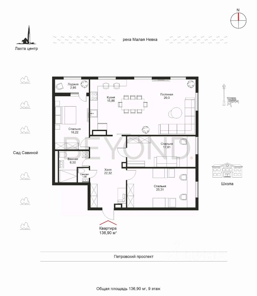 136 м² · Этаж 9 из 9