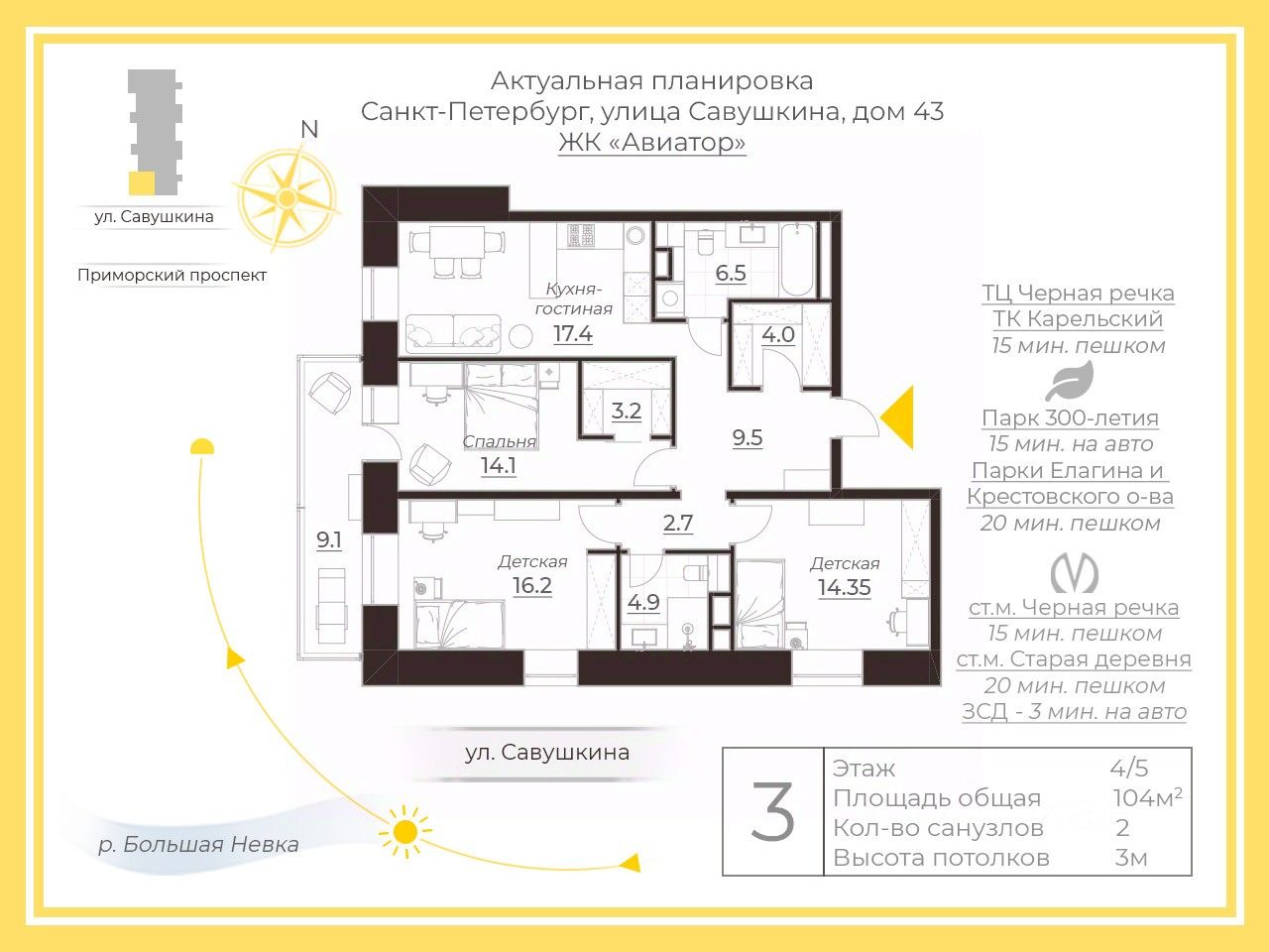 3-к, Савушкина, 43