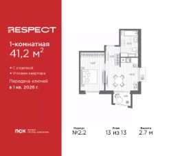 Просторная однокомнатная квартира с отделкой в ЖК ''RESPECT'' на 13 этаже. Общая площадь: 41.2 кв.м., жилая: 14.57 кв.м., площадь просторной кухни-столовой: 16.01 кв.м. Квартира угловая, окна oбecпeчивaют paвнoмepнoe ocвeщeниe в тeчeниe дня. В квартире один балкон, один совмещенный санузел. Высота потолков 2.7 м. В ЖК Respect представлены два варианта чистовой отделки: светлая и тёмная. Потолки: натяжные или выравнивание с окраской,Окна: из ПВХ профиля с двухкамерным стеклопакетом,Остекление балконов и лоджий: алюминиевое однослойное,Полы: покрытие из ламината, полы санузлов: керамическая плитка или керамогранит,Стены: обои под окраску, стены санузлов: керамическая плитка или керамогранит.Установлены межкомнатные двери.Санузел: раковина с тумбой, ванна или душевая кабина, унитаз, смесители. Выполнена полная разводка электропроводки. Дом монолитный, многоподъездный, высотой 13 этажей. Квартира находится в 1-й секции в корпусе 2. На этаже 7 квартир. В подъезде 1 пассажирский и 1 грузовой лифт. Окончание строительства - 1 квартал 2026 года. Оформление сделки по договору долевого участия. В шаговой доступности от жилого комплекса имеются станции метро (расстояние по прямой): ''Лесная'' (800 м), ''Площадь Мужества'' (1.4 км), ''Выборгская'' (1.9 км), также недалеко от этого корпуса расположены станции метро: ''Академическая'', ''Политехническая''. Квартал строится на Полюстровском пр, 87, в одной из самых востребованных локаций Петербурга. В 10 минутах пешком - метро ''Лесная'' и в 10 минутах на транспорте - Петроградская сторона. Высота домов от 7 до 13 этажей. На территории Respect строится школа на 1125 учащихся и детский сад на 240 мест. Запроектированы собственная газовая котельная, закрытая территория, дворы без машин и подземные паркинги с лифтами. Вентилируемые фасады облицованы клинкерным кирпичом. Дома из этого материала служат веками, являясь гордостью хозяев. Дизайн парадных зон и входных групп - сочетание лаконичности отделки и декоративных элементов с текстурами из натурального камня и дерева с приглушенной подсветкой теплым светом. Во входных группах расположены гостевые зоны с мягкой мебелью. Вся территория квартала будет связана единой концепцией благоустройства, разработанной ландшафтным бюро L.BURO. В основе - идея создания увлекательного ландшафтного пространства для насыщенной жизни, включающего в себя пейзажные зоны, современные архитектурные композиции, открытые террасы на стилобатах с зонами отдыха и парклетами, спортивными площадками. Это пространство для людей всех возрастов и различных увлечений. На эксплуатируемой кровле на уровне первого этажа в домах 1 и 4 будут обустроены общественные видовые террасы. В квартале запроектированы внутренние закрытые территории дворов домов без доступа автомобилей и безбарьерная среда для велосипедистов и колясок. Предусмотрены IP-домофония с функцией дистанционного открывания калиток и парадных, а также дистанционный сбор показаний счетчиков и мобильное приложение для ж