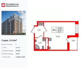 Цена со скидкой до 30% в прямой продаже от застройщика — только в этом месяце. При покупке апартаментов - паркинг за полцены. На все апартаменты действует беспроцентная рассрочка. Купите на распродаже! Покупка недвижимости в Zoom на Неве сейчас со скидкой до 30% позволит через 2 года получить доход до 6 300 000 руб. Роскошные виды на Неву. 1-к апартамент в комплексе класса бизнес-лайт Zoom на Неве на 9-м этаже. Общая площадь 35,5. Без отделки.Zoom на Неве расположен в новом месте силы рядом с центром города на первой линии Октябрьской набережной в Невском районе, всего в 7 км от исторической части Санкт-Петербурга. Большой выбор эргономичных и максимально продуманных планировок позволит каждому найти вариант по душе. Панорамные виды на Неву, благоустроенные дворы, детская игровая комната, подземный паркинг, коммерческие зоны на первом этаже, это и многое другое делает Zoom на Неве идеальным местом для жизни. Особенности:- Панорамные виды на Неву и город,- 10 мин. до Парка Строителей, 15 мин. до Лондон-молла, Ленты, Максидома, 15 мин. до метро ''ул. Дыбенко'', 12 мин. до КАД, 10 мин. до центра,- Единая архитектурная концепция. Сдержанные и монументальные фасады в неоклассическом стиле,- Парадный лобби для жильцов. Единый вход в комплекс с администратором, зоной ресепшн и охраной, зоной для бесконтактной доставки посылок и еды,- Подземный отапливаемый паркинг с доступом из парадной,- Доступно 3 варианта отделки на выбор: черновая, предчистовая (White Box) и чистовая,- Зоны отдыха для взрослых и детей, Wi-Fi-покрытие во дворе и в паркинге, зоны для питомцев, арт-объекты и много другое. В шаговой доступности вся необходимая инфраструктура от детских садов и школ до супермаркетов и салонов красоты,- Все происходящее контролируется видеокамерами, а покой внутренней территории и безопасность ваших детей гарантируется полным отсутствием транспорта во дворах в концепции ''без машин''.
