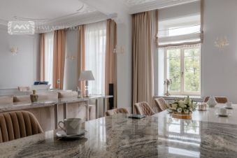 Арт. 119808852 В продаже квартира в самом сердце исторического Петроградского района: в считанных минутах до ''Авроры'', Петропавловской крепости, Домика Петра I.3 года назад в квартире выполнен роскошный дизайнерский ремонт с полной заменой всех коммуникаций, стен, перекрытий, окон и электропроводки. Руками лучших реставраторов Петербурга создана гипсовая лепнина.Планировка: * Большая кухня-гостиная 54,3 м² с 4 окнами. * Мастер-спальня 27,4 м² с гардеробной и собственной ванной. * Вторая спальня 12 м² с гардеробной. * Гостевой санузел с душевой. * Прихожая с потайным шкафом.Окна обеих спален смотрят в тихий двор. Парадный вход с улицы Куйбышева, ухоженная парадная, по 2 квартиры на этаже, тихие соседи, комфортный лестничный марш. Во дворе есть закрепленное парковочное место.Ждем вас на просмотры!