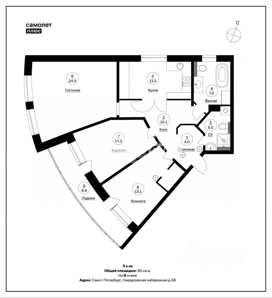 342802 Санкт-Петербург, Московский район, ул. Среднерогатская, до 16, корп.5. Продается просторная трехкомнатная квартира в ЖК 'Светлый мир Жизнь'. - О КВАРТИРЕ - Общая площадь - 70,6 кв.м. Комнаты изолированные - 14,+14,2+16,5 кв.м. Кухня - 10,2 кв.м. Прихожая - 10 кв.м. Ванная комната - 4,1 кв.м. Туалет - 1,6 кв.м. Две лоджии - 2,1+1,9 кв.м. В стоимость квартиры входит мебель и техника. - О ДОМЕ - Дом комфорт-класса, 2019 года постройки: - закрытая территория двора с круглосуточным видеонаблюдением, - входные группы с витринным остеклением, - ниши для велосипедов и колясок, - развивающие детские площадки, - пешеходные аллеи, велодорожки. - Инфраструктура - Дом расположен в развитом районе. В шаговой доступности от дома расположена вся необходимая инфраструктура: супермаркеты, ТЦ, фитнес-центры, кафе, отделения банков, ПВЗ, поликлиники, аптеки, детские сады и школы. Рядом с ЖК строится новая школа. - Транспортная доступность - До метро 'Звездная' 11-15 мин. пешком. Удобный выезды на КАД и ЗСД, 15 мин. на транспорте до аэропорта Пулково. Движение общественного транспорта интенсивное, обилие маршрутов городского наземного транспорта в сторону нескольких станций метро: Звездная, Московская, Купчино. Основные транспортные магистрали микрорайона: Московское шоссе, Дунайский проспект, Пулковское шоссе. С ЖД станции Купчино можно за 20 минут добраться до живописных парков и дворцов Пушкина и Павловска. ПРО ДОКУМЕНТЫ: Один взрослый собственника. Полная стоимость в договоре. Материнский капитал не использовался. Звоните! Просмотры по договоренности