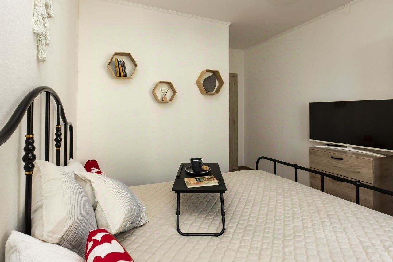 Продается уникальная очень уютная евро двушка. Со всей мебелью, техникой! Все это останется новым хозяевам! Вы экономите время и деньги, просто заезжай и живи. Спальня 10 кв метров, светлая, утром теплый солнечный свет создает приятную атмосферу, плотные шторы приглушают солнце, уютная кровать с высоким комфортным матрасом, прикроватные тумбочки, комод и большой шкаф, полки и декор, телевизор. Гостиная с встроенной кухней 17 кв метров, большой и удобный раскладной диван, обеденный стол также раскладывается и становится больше, много декора и цветов, На кухне есть все необходимое для комфортной жизни: микроволновая печь, мини печь, посудомойка встроенная, электро плита, набор посуды, кухня вместительная! На балконе оборудована зона для отдыха chill out, очень комфортное кресло, мягкий диванчик, столик, солнце по утрам попадает на балкон и получается очень теплая и позитивная атмосфера, по вечерам также приятно расслабится в кресле, закат подсвечивает атмосферу на балконе, Ванна и туалет совмещенный, стиральная машина на 6 кг, удобный шкафчик с зеркалом. В прихожей есть шкаф и большое зеркало, пуфик и этажерка для обуви. Двор закрытый, парковка снаружи, рядом есть большое количество магазинов. В этом доме рядом с парадной находится булочная, каждый день свежий хлеб, пивной магазин, кальяны, вет магазин, аптека и Дикси, салон красоты, очень удобно. Магазин лента в 3 минутах ходьбы. Хорошая транспортная доступность: у дома автобусная остановка, в сторону метро пр. Ветеранов троллейбус и несколько маршрутов автобусов. Поблизости ж. Д. Станция Сергиево, с которой можно доехать до Балтийского вокзала, до Петергофа. Для прогулок и отдыха много парков: парки Сосновая поляна, Новознаменка, Южно-приморский и Константиновский, Финский залив и дворцово-парковые ансамбли Петродворца и Стрельны. Вообще район очень зеленый, направление к Петергофу всегда под особым контролем, поэтому дороги хорошие, улицы ухоженные. Жк Солнечный город очень удобен для семей с детьми, много школ, садов и разнообразных площадок для детей. В доме нет студий, в основном 1-2 комнатные квартиры, поэтому достаточно тихо и спокойно, нет перенаселенности и шумных шальных соседей, а это очень важно для комфортной жизни! Квартира без обременений, 1 собственник более 5 лет, без мат капитала. Агентам Не Беспокоить! Сотрудничать не буду, не тратьте свое время.