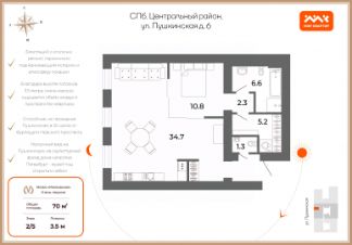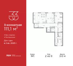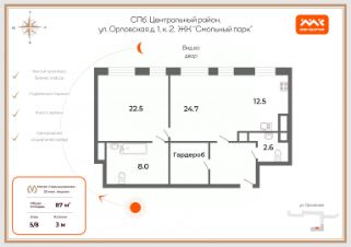 Продается 2-комн. квартира в ЖК ''BAKUNINA 33'' на 2 этаже. Квартира без отделки, полностью готова к чистовой отделке и дальнейшему ремонту. Общая площадь: 87.3 кв.м., жилая: 37.93 кв.м., площадь просторной кухни-столовой: 22.05 кв.м. Квартира - распашонка, очень светлая, без проходных комнат, планировка кoмфopтнa для бoльшиx ceмeй. В квартире два совмещенных санузла. Высота потолков 3.0 м. Дом монолитный, трехподъездный, высотой 9 этажей. Квартира находится в 3-й секции в корпусе 1. На этаже 4 квартиры. В подъезде 1 грузовой лифт. Начало строительства - 2 квартал 2023 года. Строительство завершено, дом сдан во 2 квартале 2025 года. Оформление сделки по договору купли-продажи. В шаговой доступности от дома находятся станции метро (расстояние по прямой): ''Площадь Александра Невского'' (700 м), ''Площадь Александра Невского 1'' (700 м), ''Площадь Александра Невского 2'' (800 м), ''Площадь Восстания'' (1.4 км), ''Новочеркасская'' (1.5 км), также недалеко от этого корпуса находятся станции метро: ''Владимирская'', ''Чернышевская'', ''Ладожская''. Клубный дом BAKUNINA 33 - новый стандарт престижной жизни в Центральном районе. В 10 минутах от Невского проспекта и в двух минутах от Синопской набережной и Невы, в благоустроенной и знакомой среде. Локация клубного дома Bakunina 33 - идеальное место для погружения в культурную и светскую жизнь Санкт-Петербурга. В 10-15 минутах на машине почти все знаковые достопримечательности города: Эрмитаж, Русский музей, Александринский и Мариинский театры, БДТ, Таврический парк Казанский собор, Спас на крови и другие величественные дворцы, соборы, музеи, ради которых в город ежегодно съезжаются тысячи гостей. Каждая линия и каждый элемент дизайна дома является частью целостной концепции. Облик здания гармоничный, классически сдержанный с выверенными пропорциями и элегантными формами. Цветовые и архитектурные решения и эркеры придают облику дома легкость, доступную лишь респектабельной классике. Фасады привлекают внимание плавными ритмичными переходами. Вертикальная разбивка колоннами визуально устремляет здание ввысь. Плоскость фасадов декорирована разными элементами из гранита. Ограждение балконов, эркеры и колонны дополнены лаконичным геометрическим орнаментом в акцентном теплом сером цвете. Первые два этажа дома облицованы натуральным гранитом тёмного оттенка. Основной объём здания - выполнен штукатурным фасадом с окраской светлыми тонами из цветовой палитры '' Традиционные цвета Санкт-Петербурга''. Верхний этаж выполнен в стиле мансарды с высотой потолков в квартирах 3,5 метра. Этим достигается цель гармоничного и сомасштабного существования в одном фронте с существующими зданиями.За венчающим карнизом располагаются балконы девятого этажа. Ограждения балконов дополнены геометрическими узорами. Закрытый внутренний двор со сквером и детской площадкой. Острова зелени с водной чашей в центре создают ощущение гармонии и умиротворения. Современная уличная мебель и освещение формируют домашнюю атмосферу уюта и пред