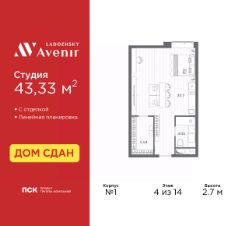 1-комн. апартаменты-студия с отделкой в ЖК ''Ladozhsky AVENIR'' на 10 этаже. Общая площадь: 60.83 кв.м., площадь гостиной 53.45 кв.м., из которых 8.4 кв.м. выделено под кухонную зону. Все окна выходят на одну сторону. В апартаментах один совмещенный санузел. Высота потолков 2.7 м. Апартаменты находятся в корпусе 1. Дом монолитный, одноподъездный, высотой 14 этажей. На этаже 50 квартир. В подъезде 4 пассажирских и 4 грузовых лифта. В шаговой доступности от дома имеются станции метро (расстояние по прямой): ''Ладожская'' (800 м), ''Новочеркасская'' (1.7 км), также недалеко от этого корпуса расположены станции метро: ''Площадь Александра Невского'', ''Чернышевская'', ''Площадь Восстания''. Тест-драйв в готовых апартаментах. Перед покупкой можно арендовать номер для проживания с компенсацией от застройщика. Ladozhsky AVENIR — апартотель бизнескласса в историческом районе Матросская слобода на Правобережье Невы в 10 минутах пешком от станции метро ''Ладожская'' и 10 минутах на автомобиле до Невского проспекта.Апартотель Ladozhsky AVENIR — четвертый проект сети сервисных апартотелей AVENIR и первый мультиформатный проект, включающий в себя апартаменты, офисы и коммерческие помещения. Относится к высокому сегменту ''Бизнес - класс''Все апартаменты сдаются с отделкой ''под ключ'' в единой стилистике. Семейная ипотека на апартаменты не распространяется.Деятельность по сдаче апартаментов в аренду осуществляет управляющая компания PSK INVEST, входящая в группу компаний ''ПСК''.Для передачи апартамента в управление PSK IINVEST необходимо заключить договор на приобретение пакета ''Меблировка и оснащение''. Аккредитация в банках: ПАО ''Банк Уралсиб'', ПАО Банк ''ВТБ'', ''Сбербанк России'', ПАО АКБ ''Абсолют Банк'', ПАО ''Совкомбанк'' и других. #1cAzFl