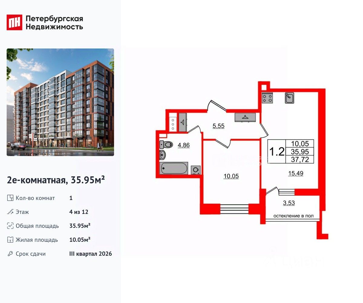 Продается просторная 1-комнатная квартира от застройщика в жилом комплексе ''Титул в Московском'' в престижном Московском районе.До метро можно добраться пешком всего за 25 минут.Удобная, классическая, функциональная европланировка, большая кухня-гостиная 15.49 м², просторная прихожая 5.55 м². Общая площадь квартиры - 35.95 м², жилая 10.05 м², высота потолка 2.77 м.Квартира продается с отделкой ''NORD LINE SILVER ВК NEW''.Что особенного в ЖК ''Титул в Московском''?• Престижный Московский район• Авторская архитектурная концепция• 2 центральные входные группы с ресепшн и лаундж-зонами• Кленовая аллея с арт-стеллой, цветочная аллея и сад трав• Уютные дворы-патио, площадки SetlKids и SetlSport• Инновационный Лицей Setl с оригинальной архитектурной концепцией и уникальной образовательной средой