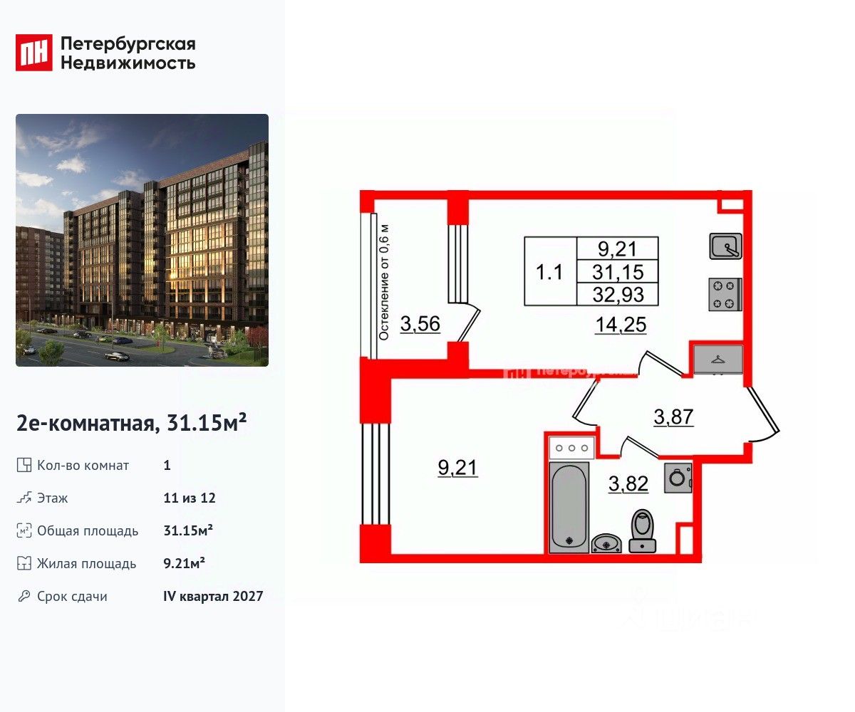 Продается уютная 1-комнатная квартира от застройщика в жилом комплексе ''Setl Лофт'' в престижном Московском районе.До метро можно добраться пешком всего за 25 минут.Удобная, классическая, функциональная европланировка, большая кухня-гостиная 14.25 м², вместительная прихожая 3.87 м². Общая площадь квартиры - 31.15 м², жилая 9.21 м², высота потолка 2.75 м.Квартира продается с отделкой ''NORD LINE WHITE ВК NEW''.Что особенного в ЖК ''Setl Лофт''?• Престижный Московский район. Близость к метро ''Звёздная''• Архитектура в стиле лофт• Единая входная группа с авторским дизайном и лаундж-зоной• Собственный фитнес-клуб с сауной• Элементы отделки и декора из стали cor-ten на фасадах и лобби