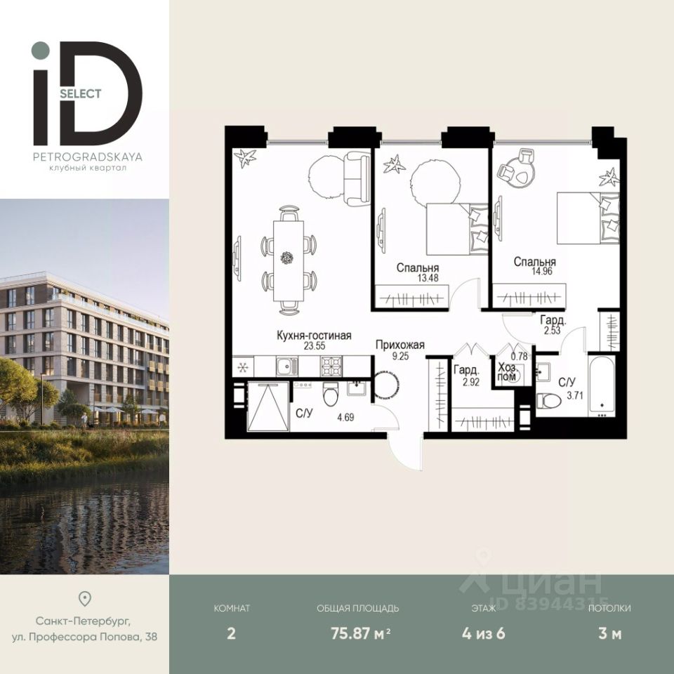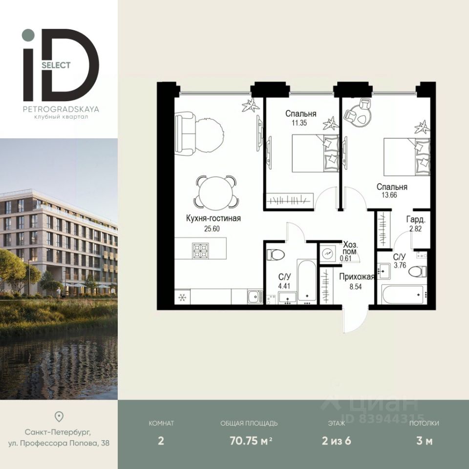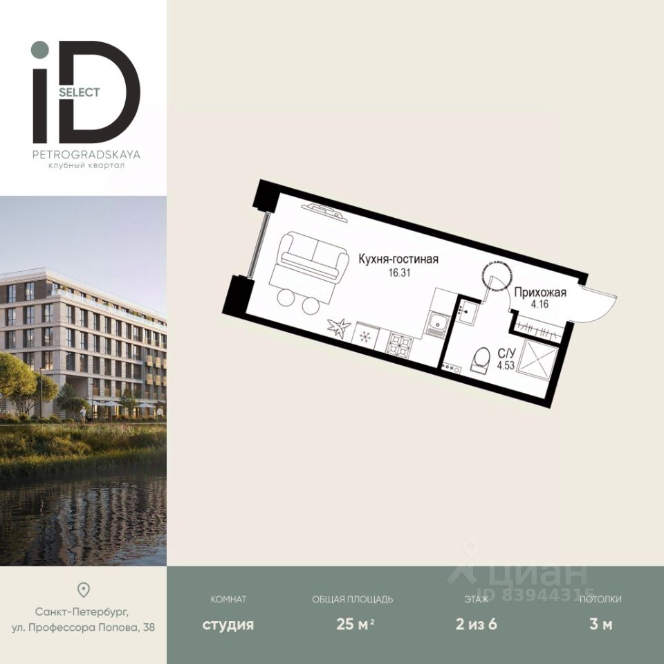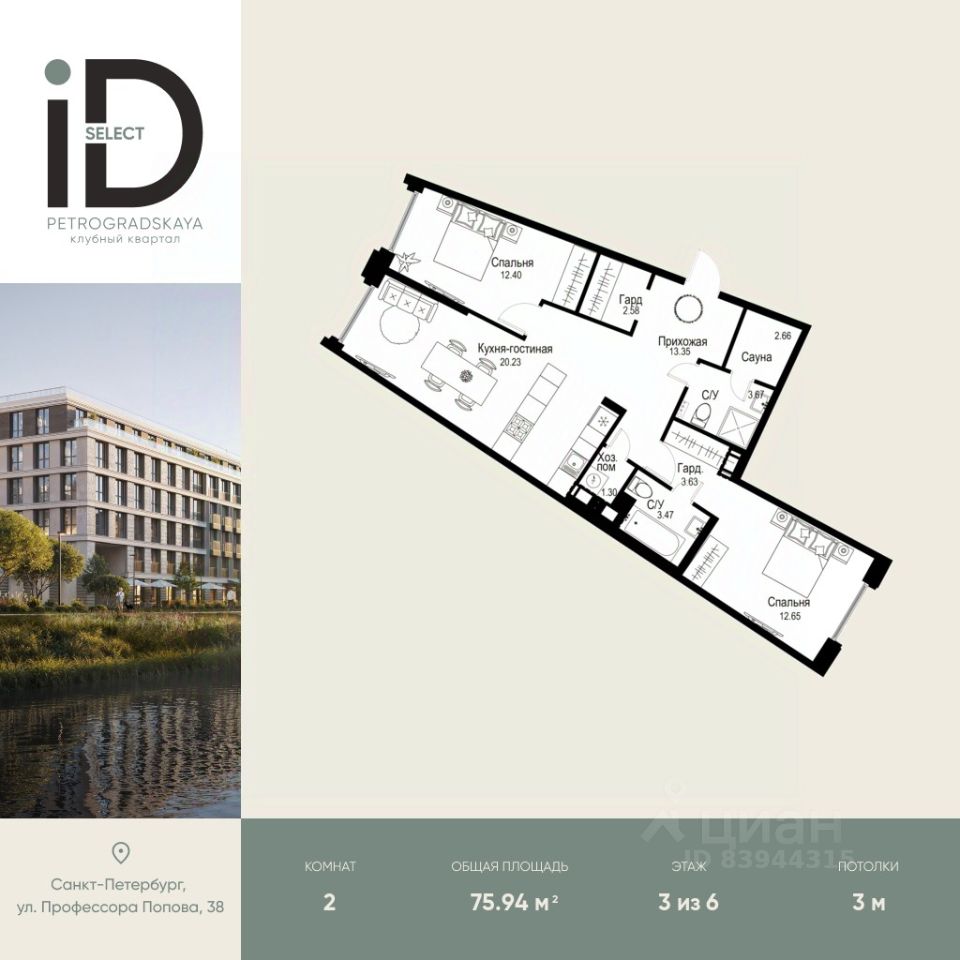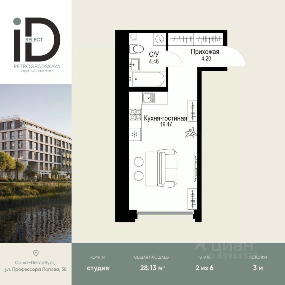 Клубный квартал iD Petrogradskaya на ул. Профессора Попова, 38 объединяет современную архитектуру, удобные планировки и развитую инфраструктуру, предлагая комфортную жизнь в престижном районе Санкт-Петербурга.Из квартир открываются виды на Иоанновский монастырь и реку Карповку. В шаговой доступности три станции метро: ''Петроградская'', ''Чкаловская'' и ''Чёрная речка''. 3-метровые потолки и эксклюзивные планировки создают атмосферу простора и уюта.Внутреннее пространство квартала включает благоустроенные дворы, курдонёры и подземный паркинг. Квартиры площадью от 20 до 136 м² с кухнями-гостиными до 40 м² и террасами с панорамными видами сдаются без отделки, оставляя свободу для индивидуальных интерьерных решений.Рядом ведущие вузы (ЛЭТИ, ИТМО), школы, детские сады, спортивные клубы, Ботанический и Вяземский сады. Удобный выезд на ЗСД, 10 минут до аэропорта Пулково. На территории квартала - кафе, рестораны, медицинские центры, детские и спортивные площадки.