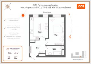 Арт. 126991636 Двухкомнатная квартира в жилом комплексе премиум-класса.5 больших окон.Свободная планировка.Дорогой покупатель, предлагаю Вам квартиру в новом ЖК NEVA-RESIDENCE. Комплекс расположен на Петровском острове!- Крестовский остров в пешей доступности - лучшее место для отдыха, прогулок и занятий спортом- Исторический центр Петербурга - буквально в 10 минутах от вашего дома.— Живописный пешеходный променад вдоль набережной Малой Невы - для вечерних прогулок и утреннего кофе с видом на воду, множество площадок для прогулок и занятий с детьми.-Территория комплекса закрыта от посторонних, ведется круглосуточное наблюдения и охрана.В комплексе предусмотрен собственный детский сад. На первых этажах — магазины, кафе, аптеки и базовые сервисы премиум-класса.Квартира светлая, компактная и функциональная планировка, 5 больших окон, позволяют Вам построить пространство под Ваши запросы, реализовать свои идеи и желания в интерьере, а не переплачивать за чужие фантазии. Один взрослый собственник, быстрый выход на сделку.Предлагаем ПРЕМИАЛЬНОЕ обслуживание для требовательных клиентов.Оперативно организуем просмотр, предоставим полную информацию по объекту.20 лет работы с требовательными клиентами подготовили нас к решению ВАШИХ сложных задач.Будем рады знакомству! Ул. Рубинштейна, д.8.