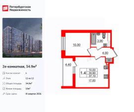 Продается уютная 1-комнатная квартира от застройщика в жилом комплексе ''Бионика Заповедная'' в динамичном Приморском районе.До метро можно добраться на транспорте всего за 11 минут.Удобная, классическая, функциональная европланировка, большая кухня-гостиная 15 м², просторная прихожая 4.44 м². Общая площадь квартиры - 34.17 м², жилая 10.62 м², высота потолка 2.77 м.Квартира продается с отделкой ''NORD LINE WHITE ВК NEW''.Что особенного в ЖК ''Бионика Заповедная''?• Оазис в городе 3 минуты пешком до Новоорловского заказника (140 ГА)• Захватывающие виды из окон на хвойный лесопарк• Всесезонный ''Заповедный парк'' во дворе площадью 23000 кв.м.• 5 единых входных групп с авторским дизайном и лаундж-зонами, сити-виллы на первых этажах с палисадниками и высотой потолков до 4 м• Места притяжения: фонтан ''Бионика'', спортивный кластер со скейт-парком, фотозоны с арт-объектами