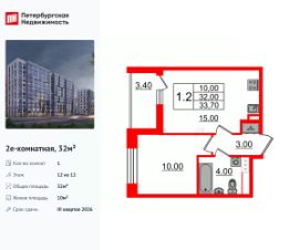 Продается уютная 1-комнатная квартира от застройщика в жилом комплексе ''Бионика Заповедная'' в динамичном Приморском районе.До метро можно добраться на транспорте всего за 11 минут.Удобная, классическая, функциональная европланировка, большая кухня-гостиная 15 м², вместительная прихожая 3 м². Общая площадь квартиры - 32 м², жилая 10 м², высота потолка 3 м.Квартира продается с отделкой ''NORD LINE SILVER ВК NEW''.Что особенного в ЖК ''Бионика Заповедная''?• Оазис в городе 3 минуты пешком до Новоорловского заказника (140 ГА)• Захватывающие виды из окон на хвойный лесопарк• Всесезонный ''Заповедный парк'' во дворе площадью 23000 кв.м.• 5 единых входных групп с авторским дизайном и лаундж-зонами, сити-виллы на первых этажах с палисадниками и высотой потолков до 4 м• Места притяжения: фонтан ''Бионика'', спортивный кластер со скейт-парком, фотозоны с арт-объектами