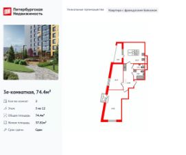 Продается просторная 2-комнатная квартира от застройщика в жилом комплексе ''Прайм Приморский'' в динамичном Приморском районе.До метро можно добраться на транспорте всего за 15 минут.Французский балкон придает особенный европейский шик комнате.Уникальная, функциональная европланировка, большая кухня-гостиная 20.07 м², просторная прихожая 11.48 м². Общая площадь квартиры - 74.4 м², жилая 37.81 м², высота потолка 2.77 м.Квартира продается с отделкой ''NORD LINE WHITE ВК''.Что особенного в ЖК ''Прайм Приморский''?• Живописные виды на Шуваловский карьер и лесной массив• ''Парящие'' французские балконы• Центральная входная группа• Креативное пространство в центре проекта, летняя терраса для отдыха• Приватные лаундж-зоны на крыше домов (3 корпус)