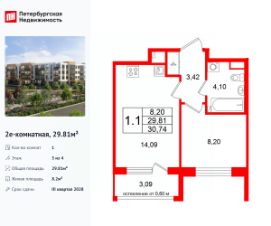 Продается уютная 1-комнатная квартира от застройщика в жилом комплексе ''Univer City'' в на юге Санкт-Петербурга.До метро можно добраться на транспорте всего за 30 минут.Удобная, классическая, функциональная европланировка, большая кухня-гостиная 14.09 м², вместительная прихожая 3.42 м². Общая площадь квартиры - 29.81 м², жилая 8.2 м², высота потолка 2.77 м.Квартира продается с отделкой ''Норд Лайн светлый''.Что особенного в ЖК ''Univer City''?• Малоэтажное строительство• Скандинавские фасады с отделкой керамогранитом, акцентные входные группы• Закрытые внутренние дворы без машин• Пешеходный променад с тематическими зонами, еловый сквер и яблоневый сад• Univer Park, включая SetlSport и SetlKids, площадку для выгула собак и зоны отдыха• Инновационный Лицей Setl с оригинальной архитектурной концепцией и уникальной образовательной средой