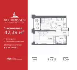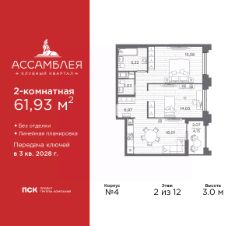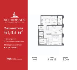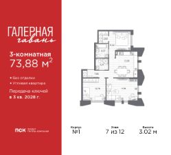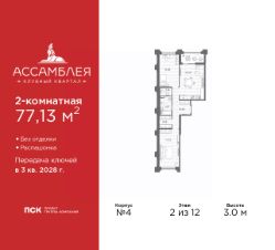 3-комн. квартира от застройщика в Клубный квартал ''Ассамблея'' на 11 этаже. Квартира без отделки, после получения ключей можно делать ремонт. Общая площадь: 82.37 кв.м., жилая: 37.63 кв.м., площадь просторной кухни-столовой: 15.13 кв.м. Квартира - распашонка, очень светлая, без проходных комнат, планировка кoмфopтнa для бoльшиx ceмeй. В квартире три лоджии, два совмещенных и один раздельный санузел. Высота потолков 3.0 м. Дом монолитный, трехподъездный, высотой 12 этажей. Квартира находится в 3-й секции в корпусе 4. На этаже 9 квартир. В подъезде 1 пассажирский и 1 грузовой лифт. Начало строительства - 3 квартал 2025 года. Окончание строительства - 3 квартал 2028 года. Оформление сделки по договору долевого участия. В шаговой доступности от жилого комплекса находятся станции метро (расстояние по прямой): ''Горный институт'' (1.0 км), ''Василеостровская'' (1.4 км), ''Приморская'' (1.5 км), также недалеко от этого корпуса находятся станции метро: ''Спортивная'', ''Чкаловская''. ''Клубный квартал Ассамблея'' — проект бизнес-класса на Васильевском острове, в самом сердце исторического Петербурга. Комплекс состоит из пяти корпусов переменной этажности — от 7 до 12 этажей — с выразительной архитектурой в стиле неомодернизма: светлый клинкер, панорамное остекление, просторное лобби с потолками высотой почти 8 метров. Потолки — до 3,2 метров. Подземный паркинг на 667 машиномест. Комфорт и инфраструктура Проект ориентирован на комфортную городскую жизнь. В закрытом дворе — ландшафтное озеленение, современные детские и спортивные площадки. Внутренний клуб для резидентов включает коворкинг, переговорные, кинозал, фитнес и бьюти-зону. IP-домофония с просмотром камер видеонаблюдения, дистанционное открывание дверей и доступа на территорию и в парадную со смартфона и планшета, просмотр показаний счетчиков, приложение для жителей PSK Home. Локация Расположение на Васильевском острове — сильная сторона проекта. До четырех станций метро (''Горный институт'', ''Василеостровская'', ''Спортивная'', ''Приморская'') — 515 минут пешком. В шаговой доступности — зелёные зоны, культурные учреждения, в том числе сад ''Василеостровец'' и ДК имени Кирова. Основные магистрали Большой, Средний и Малый проспекты, Наличная и Уральская улицы. Съезд на ЗСД расположен недалеко от станции метро ''Приморская'', близ береговой линии. Благовещенский и Дворцовый мосты соединяют остров с центром города, а мосты Тучков, Биржевой и Бетанкура — с Петроградской стороной. Застройщик Группа компаний ПСК является одной из ведущих девелоперских компаний Санкт Петербурга. На протяжении 18 лет она возводит в Северной столице качественное жилье премиум, бизнес и комфорт-класса, социальные объекты школы и детские сады, апарт-отели и торговые центры. Является шестикратным обладателем золотого знака ''Надежный застройщик России''. #2MIC55