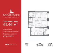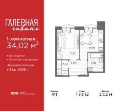 2-комн. квартира от застройщика в ЖК ''Галерная гавань'' на 7 этаже. Квартира без отделки, полностью готова к чистовой отделке и дальнейшему ремонту. Общая площадь: 62.9 кв.м., жилая: 27.89 кв.м., площадь просторной кухни-столовой: 14.22 кв.м. Комнаты изолированные, все окна выходят на одну сторону. В квартире два совмещенных санузла. Высота потолков 3.02 м. Дом монолитный, трехподъездный, высотой 12 этажей. Квартира находится в 3-й секции в корпусе 1. На этаже 7 квартир. В подъезде 1 пассажирский и 1 грузовой лифт. Начало строительства - 4 квартал 2025 года. Окончание строительства - 3 квартал 2028 года. Оформление сделки по договору долевого участия. В шаговой доступности от дома расположена станция метро (расстояние по прямой) ''Приморская'' (1.6 км), также недалеко от этого корпуса расположены станции метро: ''Горный институт'', ''Василеостровская'', ''Спортивная'', ''Крестовский остров''. ''Галерная гавань'' — это жилой комплекс бизнес-класса в исторической части Васильевского острова — на берегу Галерной гавани, ведущей свою историю с 1724 года.В свою очередь, исторический Васильевский остров это университеты, школы, детские сады, поликлиники, несколько станций метро и прочая инфраструктура без проблем с транспортной доступностью. В ''Галерной гавани'' шесть корпусов на 813 квартир, площадью от 29,5 до 134 кв.м. Высота потолков 3 м. Два корпуса из шести всего на 20 квартир. На верхних этажах расположатся квартиры с большими террасами и панорамным остеклением. Также есть квартиры с французскими балконами и мастер-спальнями. Четыре квартиры из каждых пяти с видами из окон на тихую воду, на старые и новые городские символы. Паркинг займет весь подземный объем квартала, и будет вмещать 606 автомобилей. Фасады ''Галерной гавани'' выполняются в стиле баварской кирпичной кладки, с акцентами из керамогранита графитового оттенка. Объемы задаются ризалитами с художественной подсветкой. Для жителей будет создан комьюнити-клуб с переговорной и библиотекой, кинозалом, кофе-поинтом, детской комнатой с пространством для мастер-классов, фитнес-зоной, а также бьюти-кабинетом. ''Галерная гавань'' — это также первый в Петербурге жилой комплекс с общественным пространством у воды. ГК ''ПСК'' восстановит десять исторических зданий, в которых расположатся рестораны, кафе, фитнес-клуб с бассейном, культурное пространство, театр и офисы. При этом набережная будет превращена в пешеходную, в территорию общественного пространства. #ZMBaW5